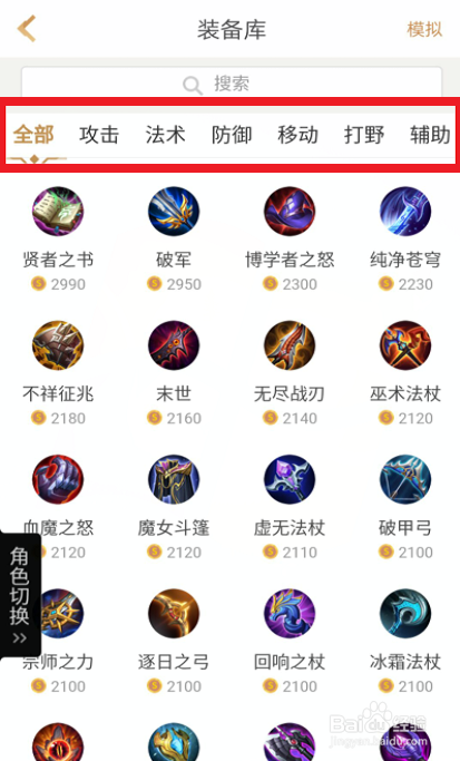 小編此例點擊了裝備庫給大家演示一下,全部的攻、法、防各個展現(xiàn),您盡可試著模擬一下。