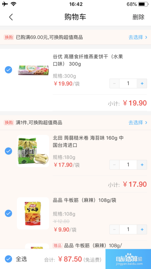 選好自己想買的東西,放入購物車,還有搞活動的也可以留心一下。不過個人認(rèn)為,不要配送費目前是極大的競爭優(yōu)勢。
