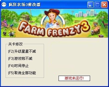 瘋狂農(nóng)場(chǎng)3修改器 綠色免費(fèi)版 瘋狂農(nóng)場(chǎng)3修改器是一款針對(duì)同名游戲開(kāi)發(fā)的輔助工具,它可以修改喲西中星星數(shù)量、金幣數(shù)量,也可以讓游戲時(shí)間停止,幫助玩家解決后面關(guān)卡難度比較大,難以通關(guān)的難題,讓游戲更加輕松自如。