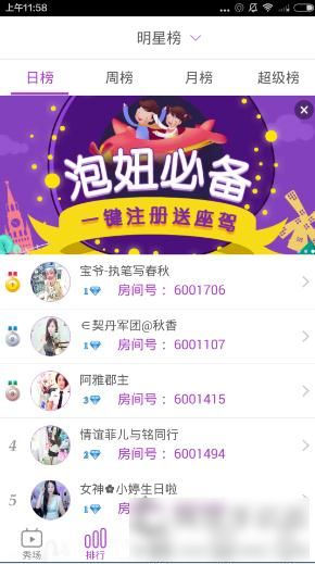 2、在明星幫界面,為你提供了日榜,周榜,月榜,超級(jí)榜的主播的喲~