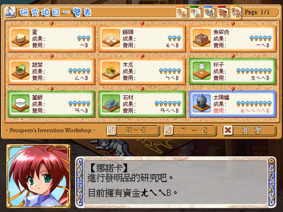玩家一天的行程有三個(gè)時(shí)段可以安排,研究一次就花費(fèi)一個(gè)時(shí)段,而且每一樣道具所需要的研究時(shí)間不一;制作所需要的時(shí)間,短則一天,長則3-4天都有可能,只要玩家妥善安排研究與制作的時(shí)間,相信你的發(fā)明工坊很快就有許多新奇的新道具。