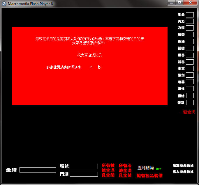 2.復制到游戲目錄下運行和游戲放在同一目錄下,游戲名稱必須為 2006122415164439887.swf (必須是英文名目錄.如:d:\abc\)