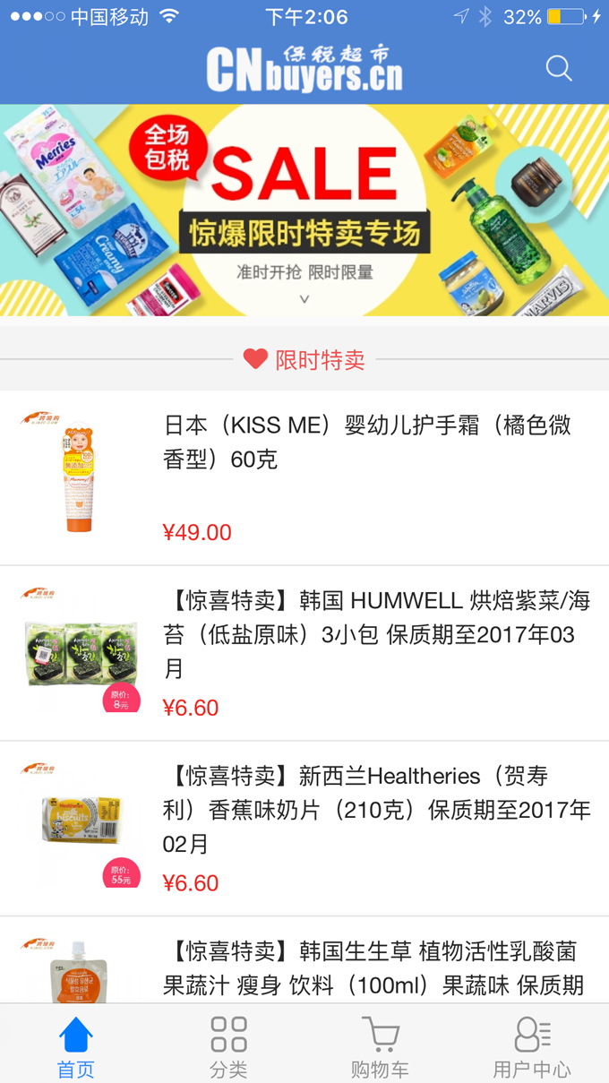保稅超市CNbuyers.cn-是由浙江糧油運營的跨境進(jìn)口購物商城,國家跨境貿(mào)易電子商務(wù)試點項目,為國內(nèi)客戶提供值得信賴的原裝進(jìn)口商品,讓您足不出戶就淘遍世界。