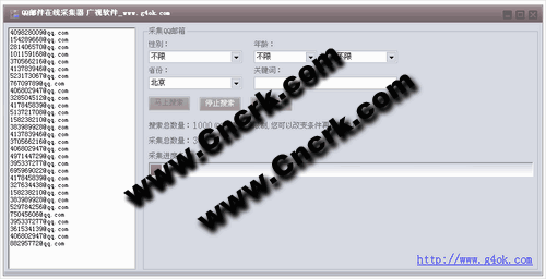 可以根據(jù)省份、年齡、關(guān)鍵詞搜索采集QQ郵箱。