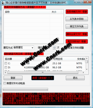 您的位置:起點軟件下載電腦軟件系統(tǒng)軟件得心應(yīng)手文件快速粉碎機(jī) V1.0 簡體中文綠色免費(fèi)版