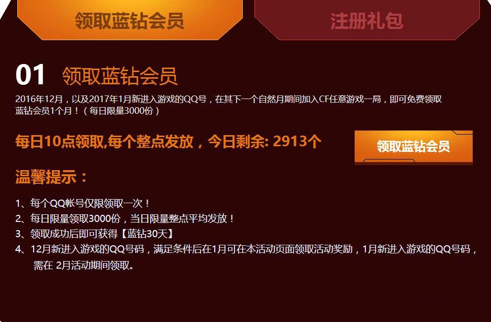 活動(dòng)時(shí)間:2017年1月1日--2017年2月28日 領(lǐng)取時(shí)間:2017年1月1日--2017年2月28日活動(dòng)地址:http://cf.qq.com/cp/a20161207lxhp/index.htm?e_code=291573