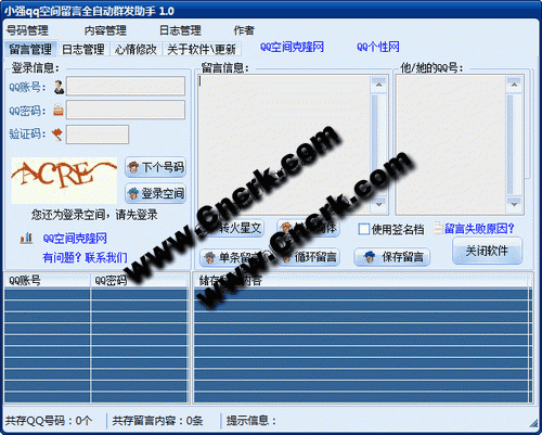 小強qq空間留言全自動群發(fā)助手是一款免費的空間留言全自動群發(fā)留言評論軟件,無需進入對方的QQ空間,就可以快速批量的給對方留言和日志評論,可以快速給您自己寫日志、寫心情、以及轉載別人的日志
