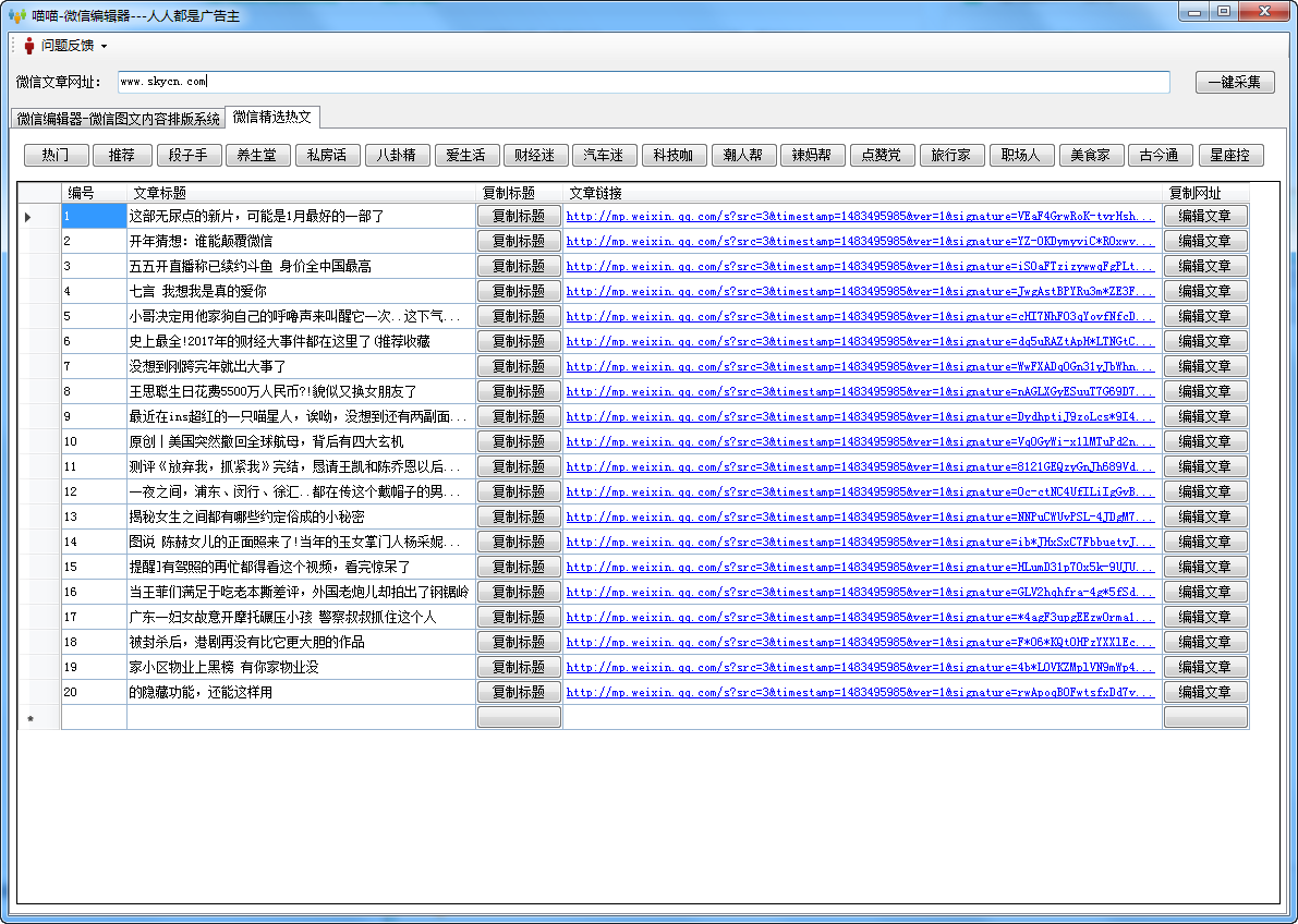 喵喵微信編輯器提供采集功能,完整采集微信公眾號文章。