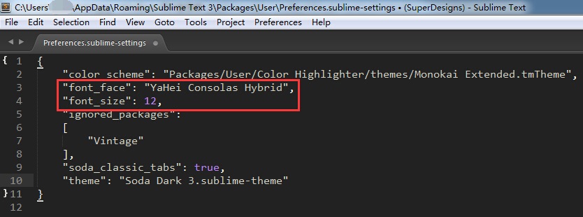 點(diǎn)菜單“Preferences--->Setting - User”,打開“Preferences.sublime-settings”。
