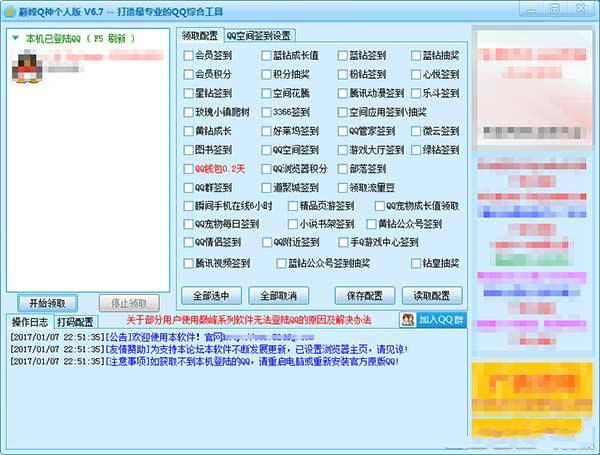 其 它:微博會員簽到,微博商城積分領(lǐng)取,鉆皇抽獎,Q寵大樂斗簽到,管家簽到,空間簽到,抽獎,手機微云簽到,3322游戲簽到,QQ游戲大 廳簽到