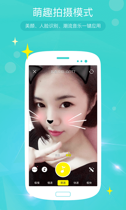 優(yōu)質(zhì)清晰的拍攝畫(huà)質(zhì),自選美顏濾鏡、美顏程度。還不夠!雙手奉上智能人臉識(shí)別,激萌趣味帖紙,拯救自拍黨,主攻?今天我們玩哪款play,嗯?