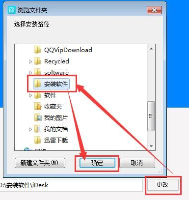 需要修改安裝路徑的朋友,點(diǎn)擊安裝向?qū)в蚁路降淖远x選項(xiàng),進(jìn)入自定義安裝界面。安裝向?qū)в刑峁┠J(rèn)安裝路徑C:\Program Files\iDesk\。點(diǎn)擊更改就可以打開文件夾選擇窗口,選擇好安裝路徑文件夾就可以點(diǎn)擊確定完成安裝路徑修改;