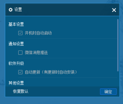 打開iDesk助手軟件界面,點(diǎn)擊右上角‘設(shè)置’按鈕,在彈出的設(shè)置窗口中,勾選或者取消‘開機(jī)自動運(yùn)行’,然后點(diǎn)擊‘確定’按鈕,即可完成。如下圖所示: