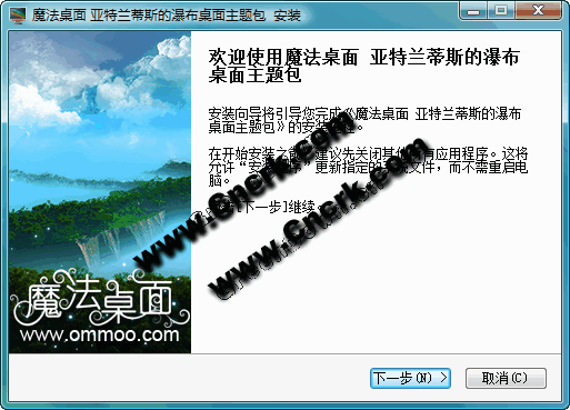 魔法桌面原創(chuàng)亞特蘭蒂斯的瀑布主題,蔚藍的天空,蔥綠的樹林,還有那一瀉千里的瀑布,在這一片藍綠色中,仿佛我們真的置身于神秘的亞特蘭蒂斯大陸
