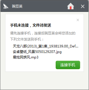 當(dāng)手機(jī)沒有連接電腦,處于離線狀態(tài)時,您也可以把電腦上的文件拖到對應(yīng)的懸浮窗里,當(dāng)手機(jī)下次連接電腦的時候,就會自動傳輸?shù)绞謾C(jī)里了。