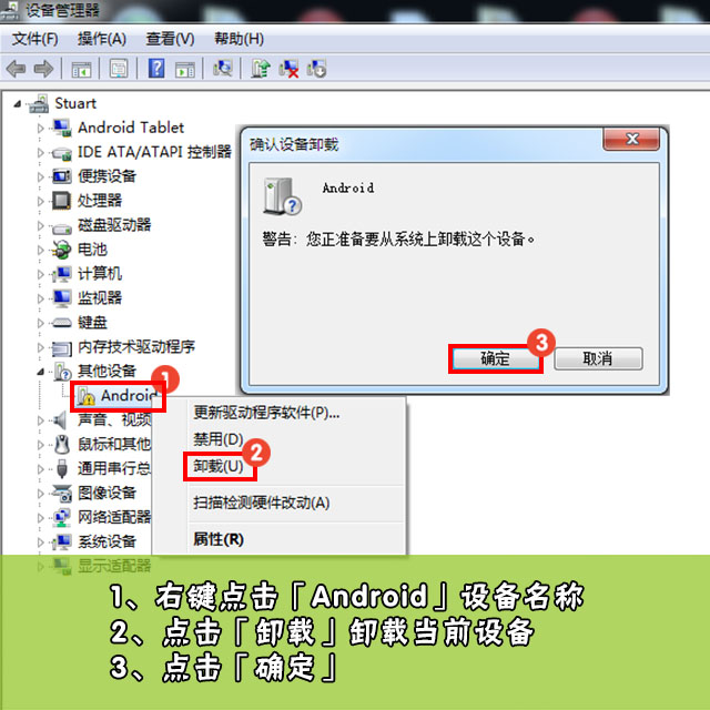 >Windows Vista/7/8 系統(tǒng)「設(shè)備管理器」開啟方法:「控制面板」-「系統(tǒng)和安全」-「系統(tǒng)」-「設(shè)備管理器」。中找到「其他設(shè)備」,點(diǎn)擊該項目后會出現(xiàn)「Android」或其他設(shè)備,右鍵單擊驅(qū)動并在彈出菜單中選擇「卸載」
