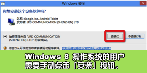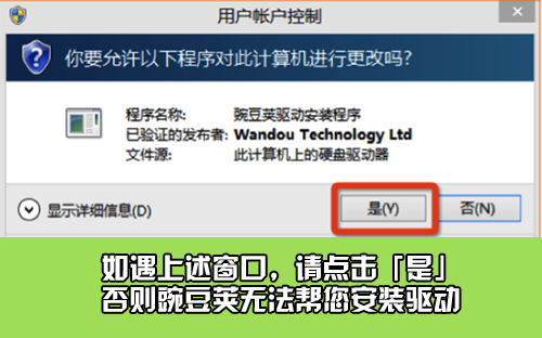 STEP2:重啟豌豆莢,豌豆莢會重新安裝驅(qū)動,請您按照豌豆莢的提示進(jìn)行操作,如果彈出「用戶賬戶控制」界面,請您選擇「是」。并在接下來彈出的窗口中點(diǎn)擊「安裝」按鈕;如果您點(diǎn)了「否」,豌豆莢將無法正確安裝您手機(jī)的驅(qū)動,您需要回到 STEP 1 重新操作;