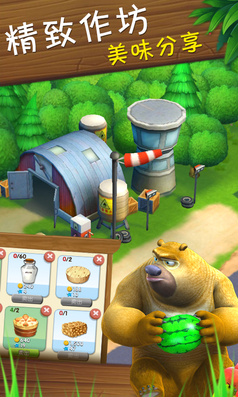 最時尚休閑模擬大作《熊出沒之熊大農(nóng)場》帶你體驗(yàn)樂趣無限的田園生活!熊大農(nóng)場帶你遠(yuǎn)離城市紛擾,身臨其境體驗(yàn)種植收割莊稼的樂趣;飼養(yǎng)憨態(tài)可掬的小動物,享受寧靜休閑的鄉(xiāng)村生活!還可以加工特色美食與好友進(jìn)行交易,完成特色訂單助你早日進(jìn)階成為頂級農(nóng)場主!官方正版授權(quán),經(jīng)典角色再現(xiàn),果蔬種植,萌寵飼養(yǎng),建造蛋糕烤爐和風(fēng)車磨坊制作出舌尖上的美食,隨意擴(kuò)建你的農(nóng)場并把它裝飾成最美麗,最夢幻的農(nóng)場莊園。小伙伴們還等什么,快來召喚好友完成高級訂單,晉升鼎鼎大名的農(nóng)場主!