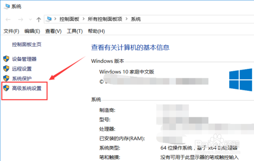 打開電腦系統(tǒng)對話框后,點擊左側(cè)導(dǎo)航欄的【高級系統(tǒng)設(shè)置】,如下圖所示。