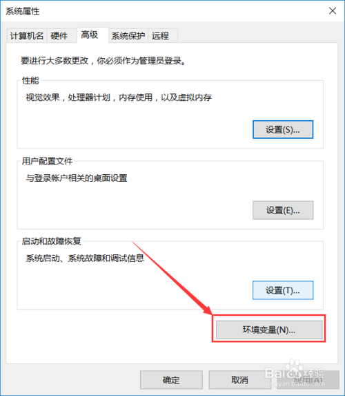 在彈出的系統(tǒng)屬性對話框里,點擊下面的【環(huán)境變量】按鈕,如下所示。