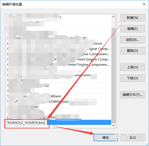 點擊新建后,會新增一行,在這里輸入【%GRADLE_HOME%\bin】,如下圖所示。