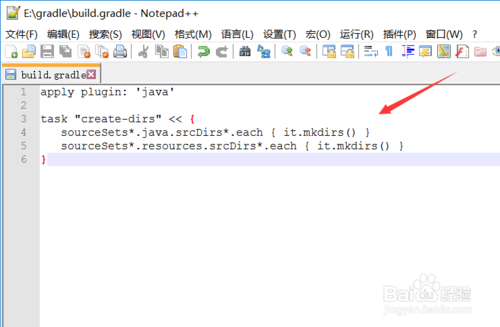 在build.gradel文件里寫上構(gòu)建java項目結(jié)構(gòu)的代碼,如下圖所示。