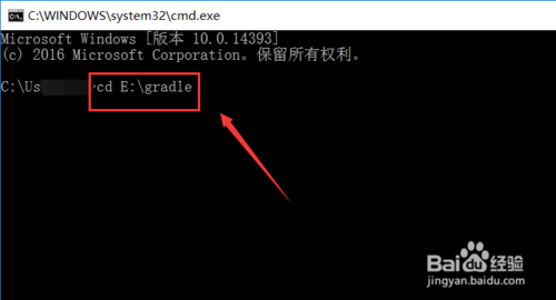 然后打開cmd命令窗口,用cd命令進(jìn)入gradel的文件夾層,如下圖所示。