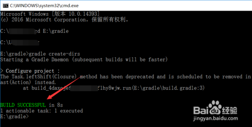 輸入gradel構(gòu)建java項目的命令:gradle create-dirs,然后回車,如下圖所示。