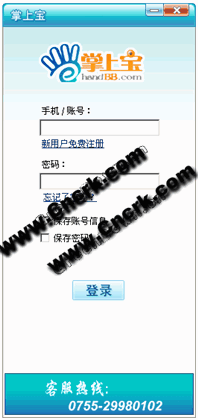 安裝完畢,雙擊桌面快捷圖標(biāo)即可通過(guò)輸入您的賬號(hào)登入掌上寶軟件版。如果您還沒(méi)有注冊(cè)的話,請(qǐng)先點(diǎn)擊界面上的免費(fèi)注冊(cè)。