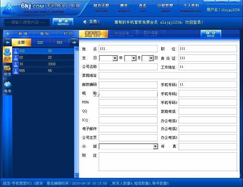 在手機(jī)里成功安裝“戰(zhàn)龍手機(jī)管家”軟件,就可使用手機(jī)進(jìn)行名片分組管理、添加、刪除、修改、儲(chǔ)存、還原、撥打電話或發(fā)送短信的功能。不用再為因查找聯(lián)系人的速度太慢或想群發(fā)短信息卻要一個(gè)個(gè)的聯(lián)系人查找再發(fā)送困擾了,它可以合理安排想要的那種聯(lián)系人分組模式??蛇x擇“添加”選項(xiàng)來(lái)自定義分組聯(lián)系人并命名各組名稱(chēng),這將會(huì)給查找聯(lián)系人及群發(fā)短信息提供很大的方便!