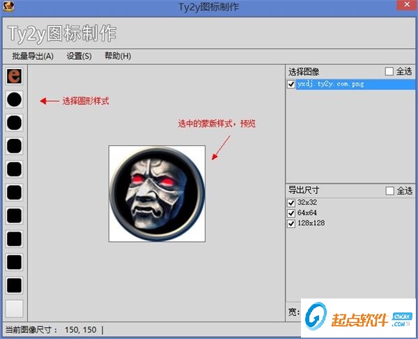 3、支持批量操作,可批量載入若干圖像文件,分別導(dǎo)出為同一或若干不同的尺寸、不同的格式 png、ico、jpg。