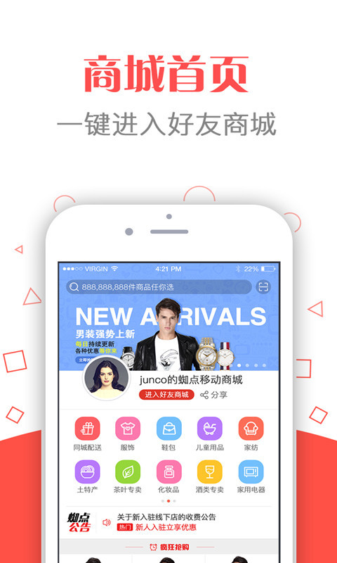蜘點(diǎn)移動商城app是為用戶打造一個網(wǎng)絡(luò)購物平臺,通過蜘點(diǎn)移動app,用戶可以購買所需的各類超值商品,也可以申請成為商城主,銷售各類好貨,獲取豐厚收益。