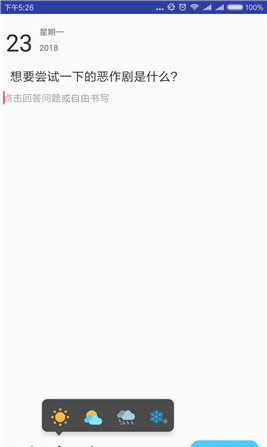 ● 寫上幾行文字,選擇當(dāng)天心情和天氣,簡(jiǎn)單完成日記,不用再為寫什么而煩惱;