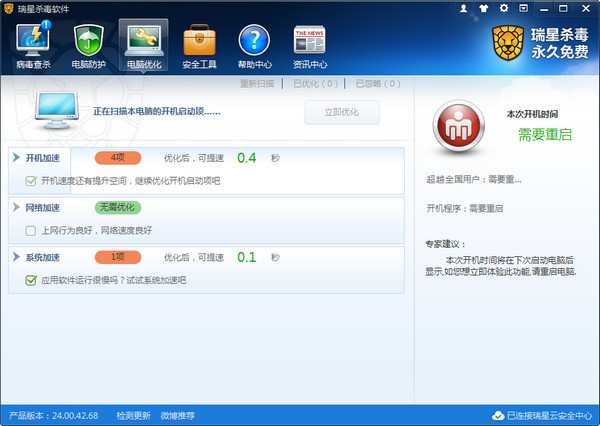 1、開機(jī)加速:主要針對開機(jī)啟動(dòng)項(xiàng)進(jìn)行優(yōu)化,通過清理電腦中過多的啟動(dòng)程序來提升電腦的開機(jī)速度;
