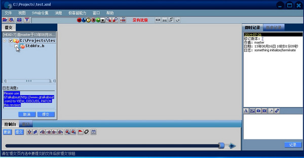 導(dǎo)航欄代表了整個版本庫。通過導(dǎo)航欄可以找到版本庫中的任何一個資源的任何一個版本,可以查看任何一個資源的修改歷史,可以查看資源的修改,可以提交新版本,可以更新工作區(qū)等等。