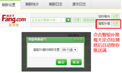 一、房產(chǎn)小蜜書設(shè)置智能補(bǔ)推的方法經(jīng)常有小伙伴忘記及時(shí)推送滿影響刷新或者被罰款。為了解決這個(gè)問(wèn)題,小蜜書目前針對(duì)主流網(wǎng)站在刷新設(shè)置界面,增加智能補(bǔ)推按鈕,每天定點(diǎn)檢測(cè)然后自動(dòng)幫你推送滿。再也不用擔(dān)心被罰款了,沒(méi)做好工作了。