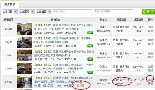 上面的輸入框中可以輸入想要克隆的房源類型等,通過(guò)搜索按鈕就可以直接獲得您想要的房源信息,免去經(jīng)紀(jì)人在信息量大的時(shí)候查找信息的麻煩。如圖