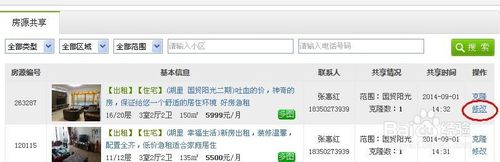 當(dāng)然房源共享列表里也會(huì)有自己共享出去的房源,這里就可以通過(guò)修改按鈕對(duì)自己共享的房源進(jìn)行共享狀態(tài)的更改。如圖