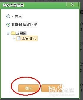 點(diǎn)擊共享按鈕,出現(xiàn)共享設(shè)置的信息框,選擇共享到哪,點(diǎn)擊確定即可,如圖