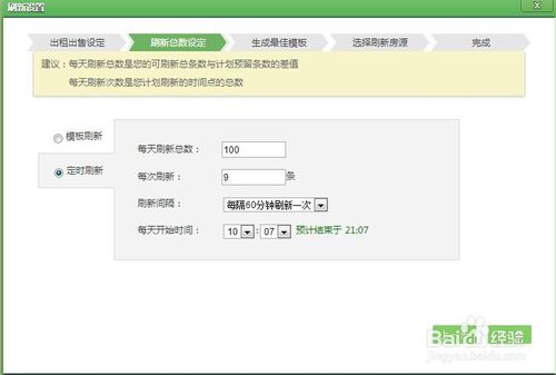 選擇模版刷新,設(shè)置好每天刷新總數(shù)(這個(gè)是有網(wǎng)站決定的)和每天刷新次數(shù)(這個(gè)由自己自由設(shè)置),每天開始已經(jīng)結(jié)束時(shí)間(最好選擇系統(tǒng)默認(rèn),也可以自由設(shè)置),點(diǎn)擊下一步.