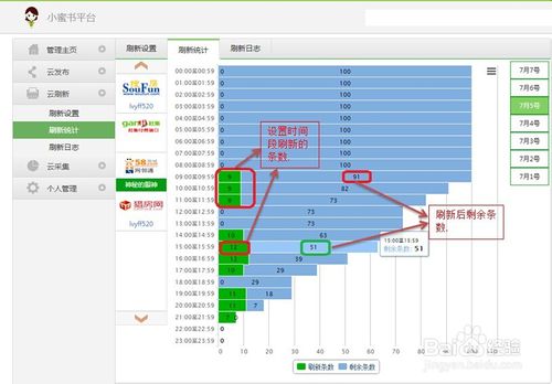 主界面左側(cè)依次找到>云刷新>刷新統(tǒng)計(jì)>里面有刷新統(tǒng)計(jì)以及刷新日志.相應(yīng)的解釋看圖中解釋.