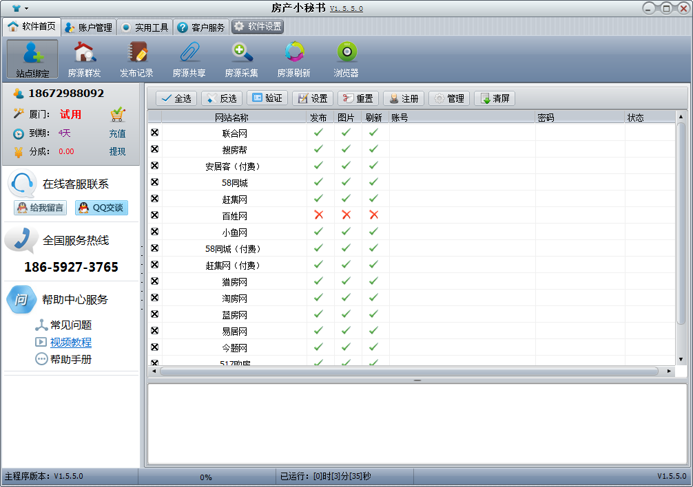 2:一鍵群發(fā),別人花一個(gè)小時(shí)做的事情你一分鐘搞定,單套多套房源多網(wǎng)一鍵發(fā)布,瞬間解決房源發(fā)布任務(wù)。若您的網(wǎng)站房源庫(kù)滿的情況下我們的程序會(huì)自動(dòng)幫你下架最早發(fā)布的房源,使用小秘書軟件發(fā)布搜房幫安居客的房源直接顯示多圖效果。3:自動(dòng)刷新,只需讓小秘書保持后臺(tái)登陸狀態(tài),全天候幫您自動(dòng)刷新。58免費(fèi)付費(fèi).聯(lián)合網(wǎng)賬號(hào)均可無(wú)限刷新,搜房幫.58.趕集均可做到個(gè)性化設(shè)置刷新達(dá)到刷新集攻的效果。