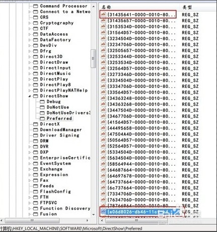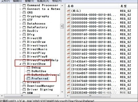 并定位到子鍵HKEY_LOCAL_MACHINE/SOFTWARE/Microsoft/DirectShow/Preferred