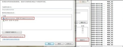 點(diǎn)擊“高級”按鈕,出現(xiàn)“所有者”窗口,在將所有者選擇Administrators,選擇“替換子容器和對象的所有者“后確定。