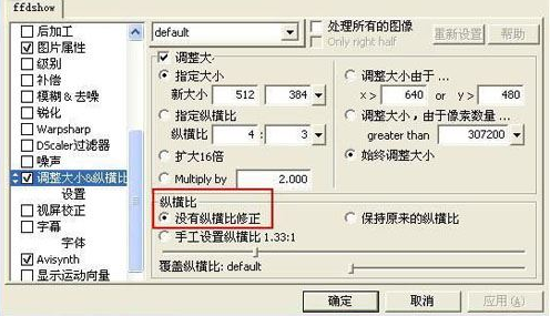 關(guān)于畫面縮放請參見我中高級教程里的相關(guān)部分,ffdshow的這個(gè)慮鏡解決了如果用壓縮軟件來縮小畫面會極度增加壓縮時(shí)間的不利因素
