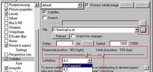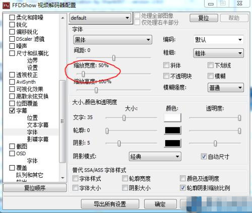 目前版本的ffdshow里關(guān)于字幕的設(shè)置有輕微的改變,請注意我圖中的設(shè)置