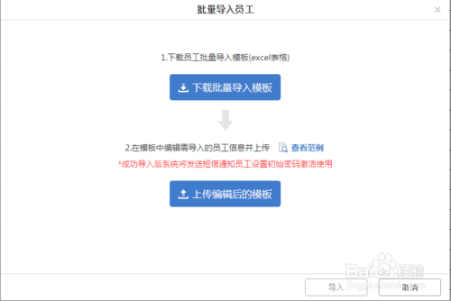 5、也可以通過(guò)excel批量導(dǎo)入,下載excel模版,將員工資料按照模版輸入,再上傳即可