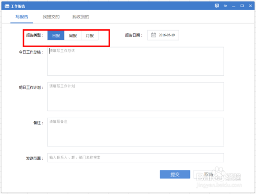 3、先選擇自己想要寫(xiě)的報(bào)告類(lèi)型,是日?qǐng)?bào)、周報(bào)還是月報(bào)