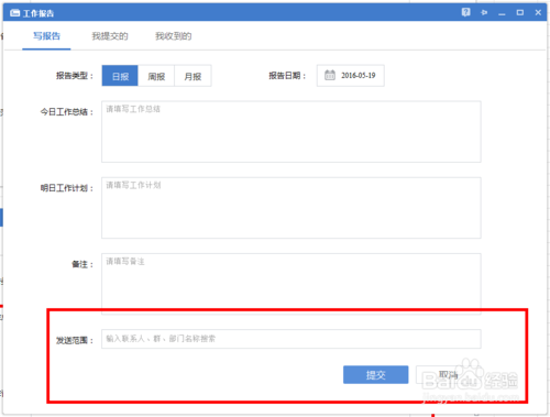 5、最后在發(fā)送范圍內(nèi)輸入發(fā)送對(duì)象,可以是人、群或者部門(mén),點(diǎn)擊提交就完成了