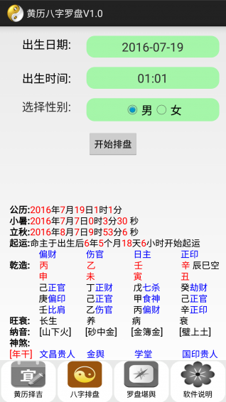 1.6版在排盤結(jié)果后增加了自助分析八字的按鈕;